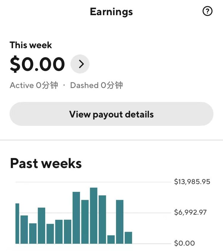 你可以看出:部分周收入 能达到上万美元,其中就包括推荐奖励及正常配送收入。(以下均为司机APP的原始真实截图)
